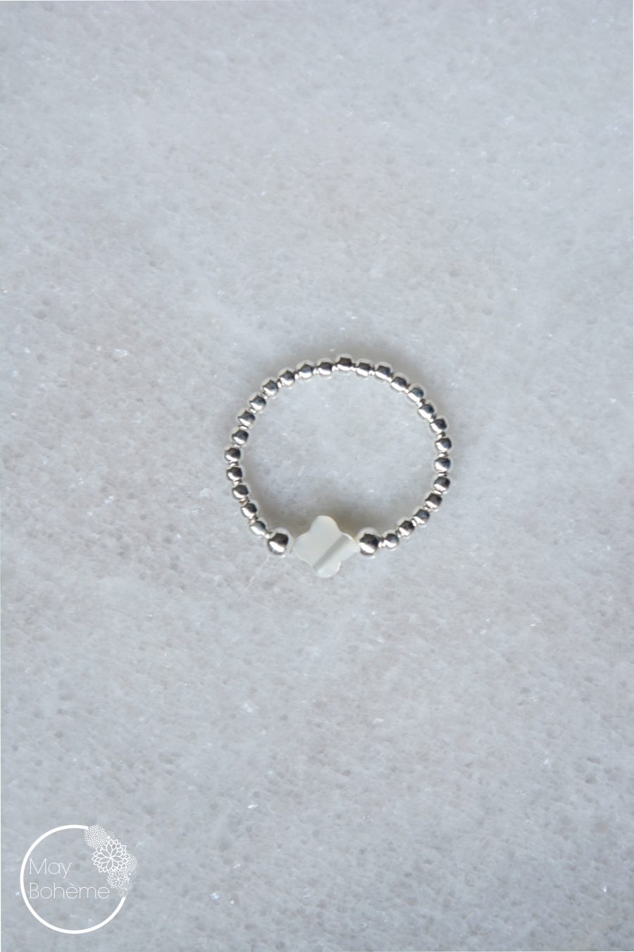 Bague Aude – Bague fine perles argent nacre trèfle ou étoile élastique