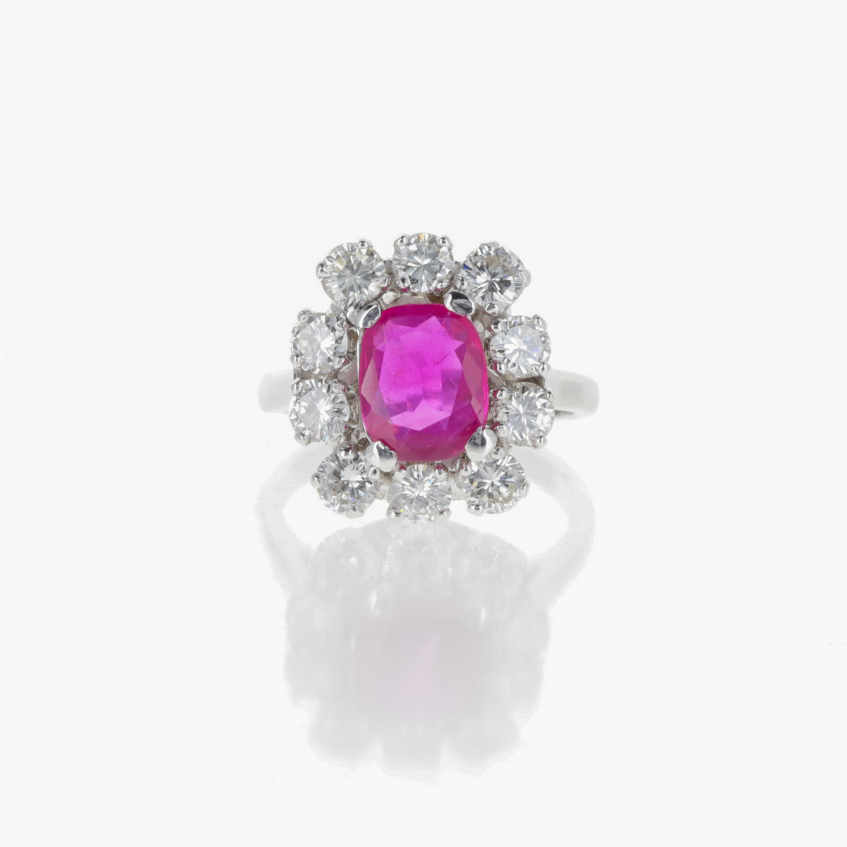 Pierres: Diamants (environ 0,5 carats), Rubis Rose (environ 2 carats)
