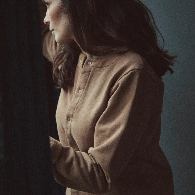 Cardigan avec boutons pression sur l’avant. 100% coton issu de l’agriculture biologique. Made in Portugal.