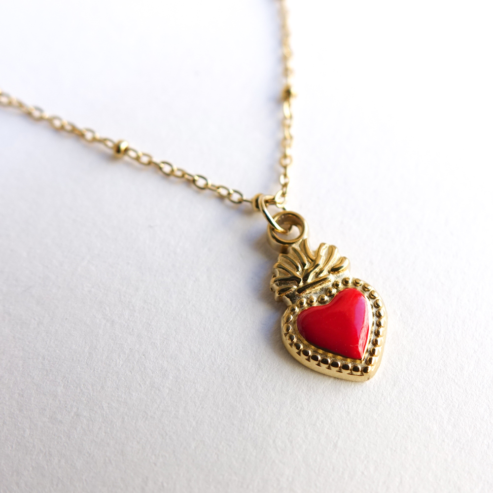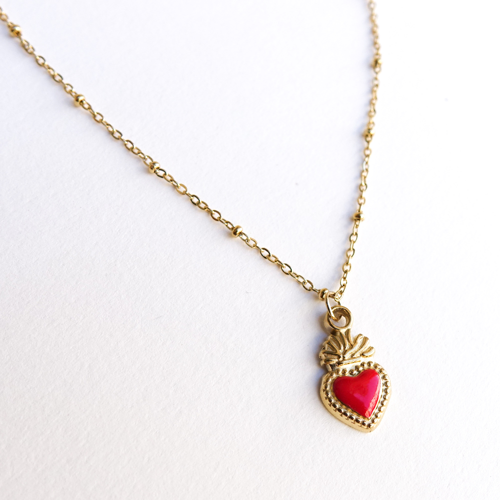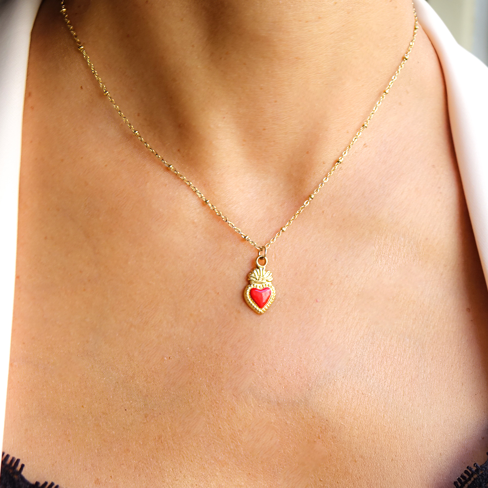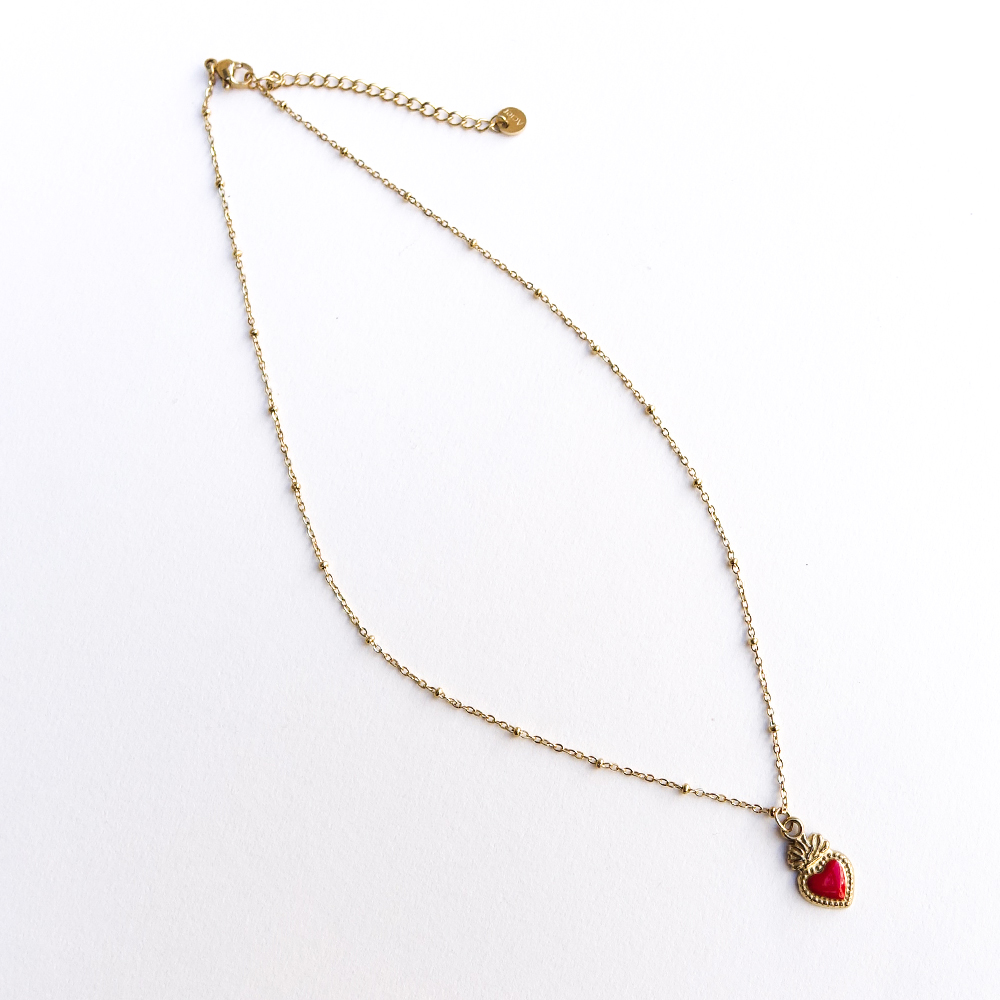 Collier coeur sacré rouge