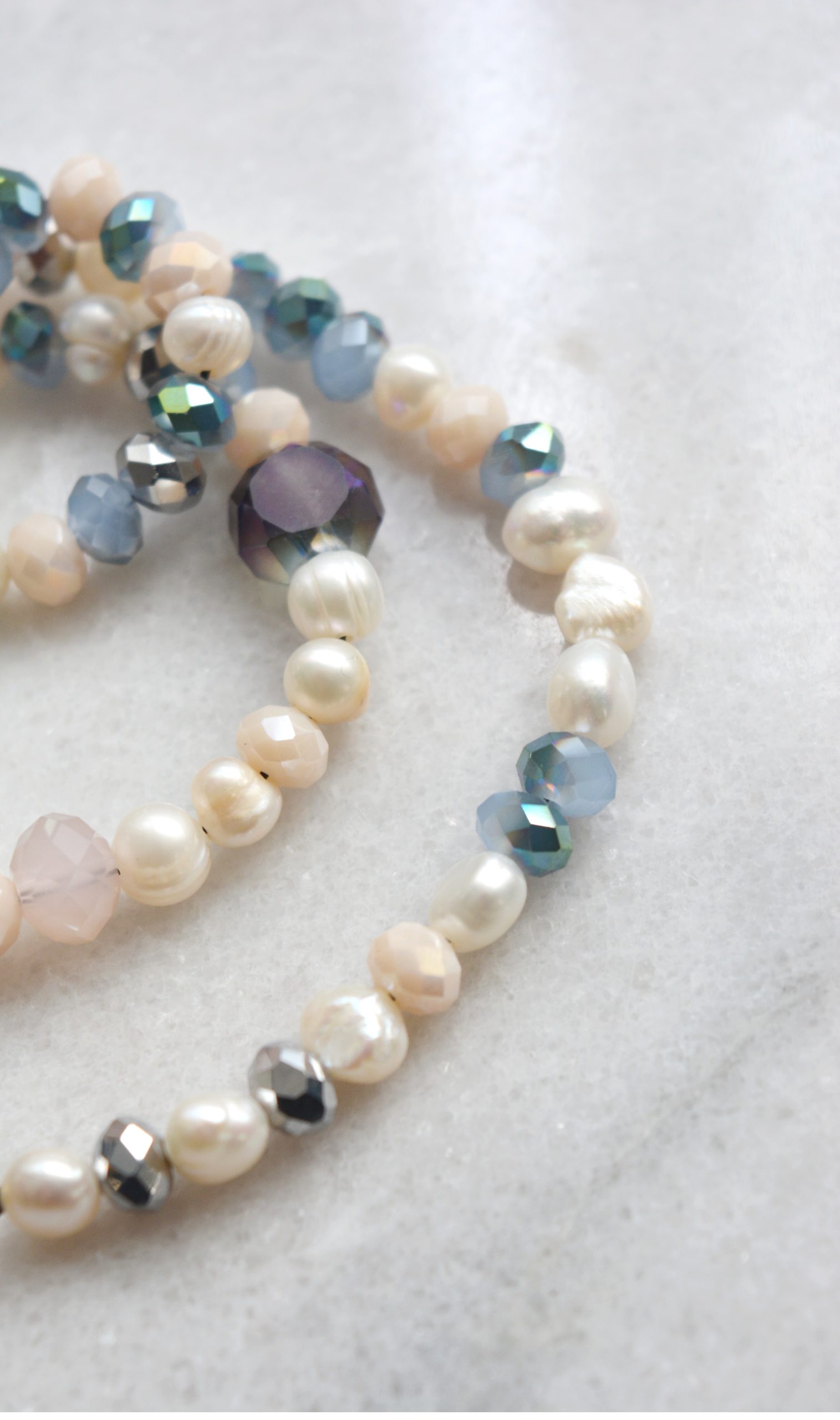 Collier PearlBlue – Collier perles eau douce et perles facettées recyclées