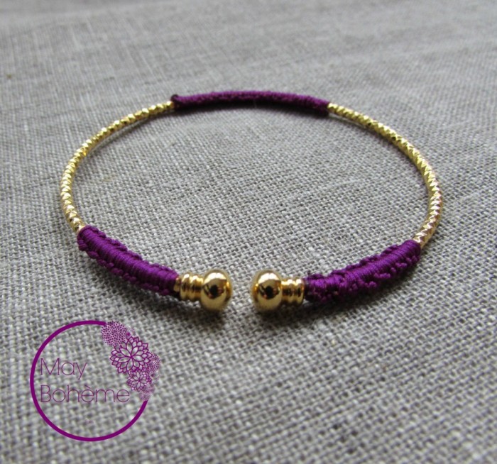 Jonc finement ciselé doré à l’or fin – ajustable avec ouverture, convient à tout les poignets – tissage macramé réalisé à la main dans notre atelier parisien. Pour un style résolument bohème chic, pile dans la tendance gypset.