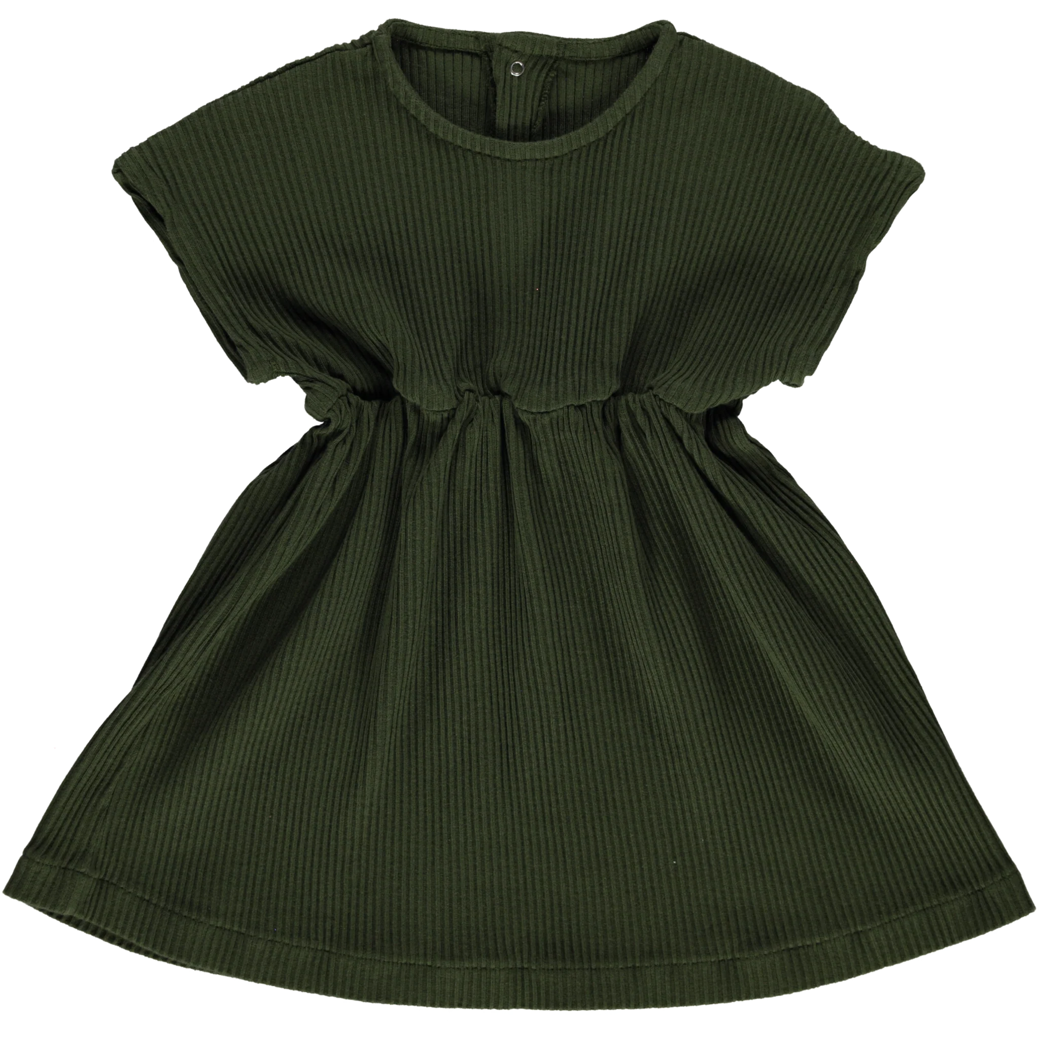 Robe Dahlia. Coupe courte, froncée à la taille. Boutons de pression dans le dos. 100% coton issu de l’agriculture biologique. Made in Portugal.